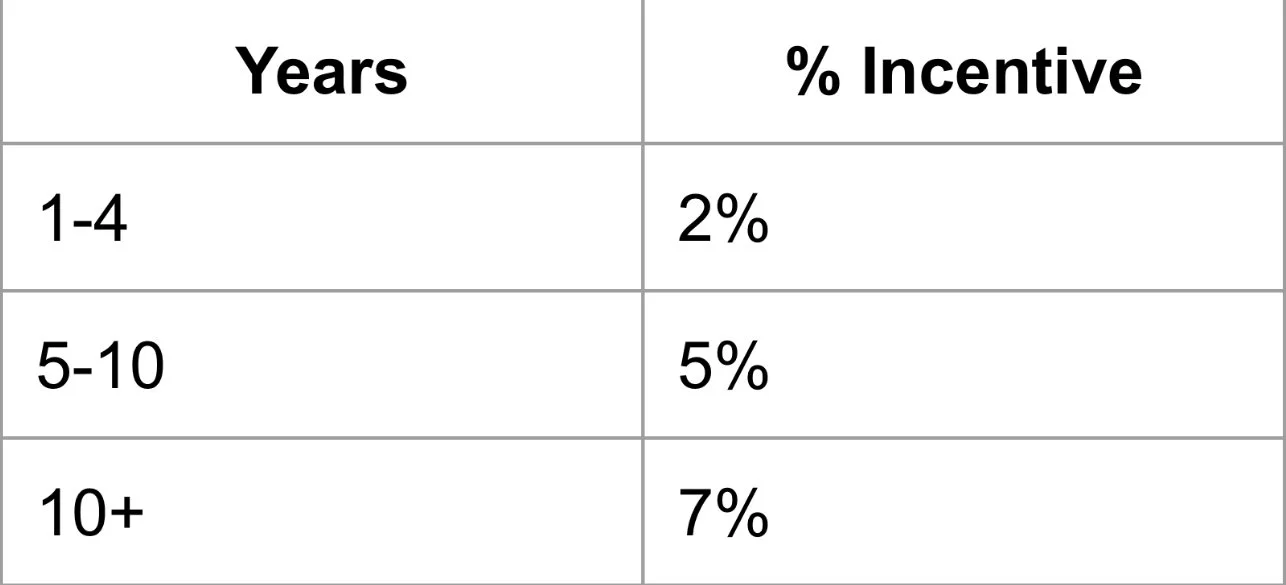 To thank our long-standing daycare partners, we’ve developed a tiered incentive program based on the number of years we’ve worked together: